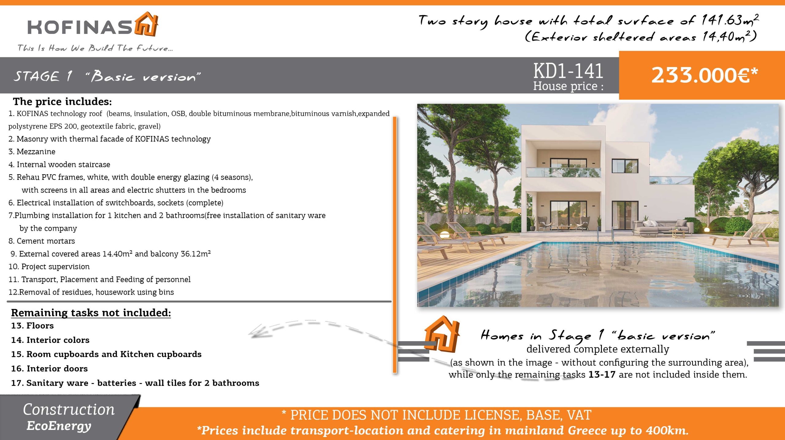 Резиденциите в Етап 1 „базов вариант“ доставен външно комплект(както е показано на изображението - без конфигурацията на околното пространство),докато само останалите задачи 13-17 не са включени в тях.