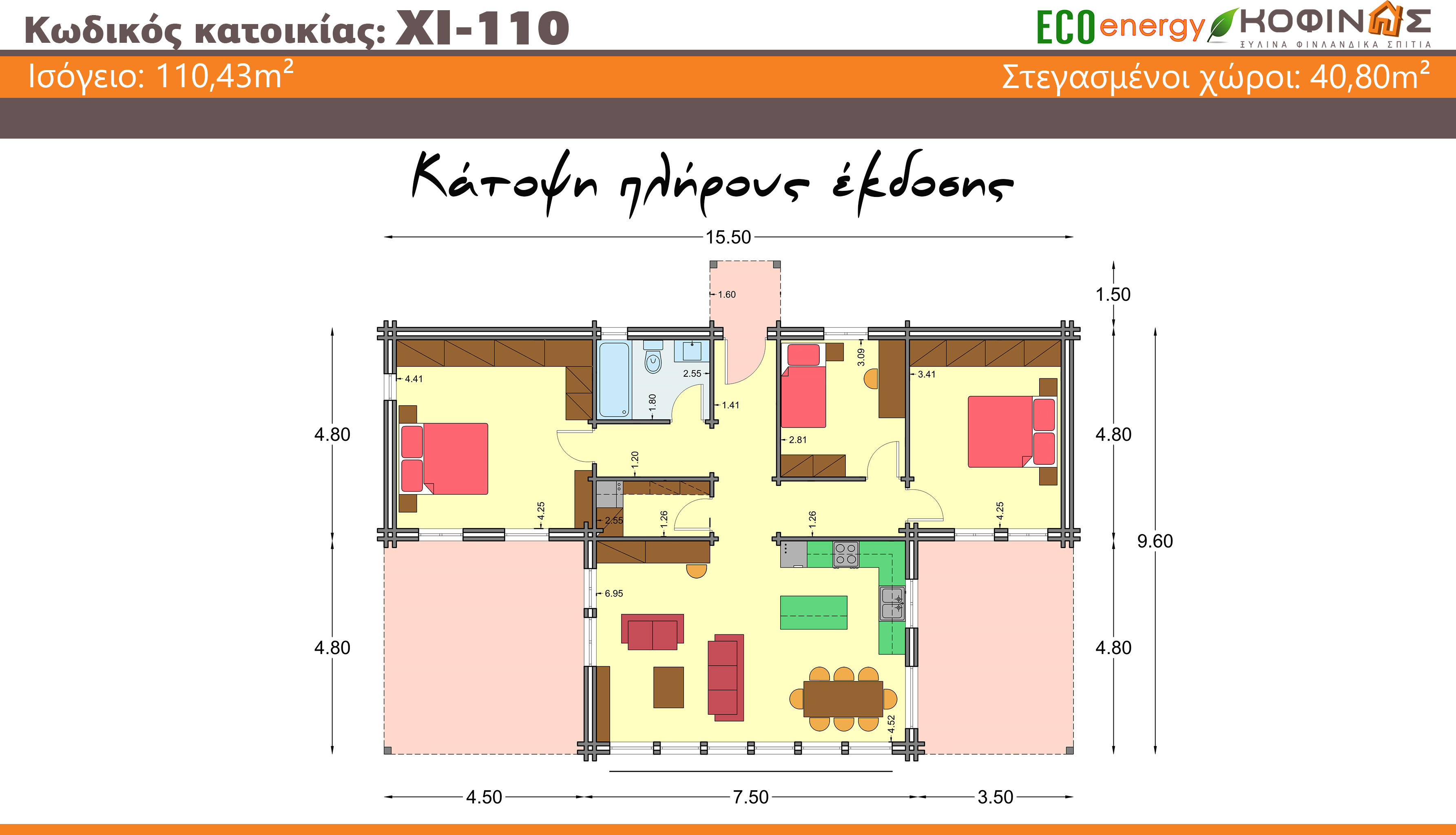 Das Unternehmen KOFINAS SA präsentiert Ihnen einen Vorschlag für ein Erdgeschosshaus von 110,43 m² (Erdgeschosshaus ΧΙ-110) für das Zuhause Ihrer Träume. Das Unternehmen Kofinas ist innovativ, ohne sich auszuruhen. Ständig eintreten neue Elemente beim Hausbau. Welche sind anerkannt und „sind zertifiziert". Sowohl von unseren Hunderten von zufriedenen Kunden als auch von der Nationalen Technischen Universität Athen, wo das einzigartige Bausystem der Firma Kofinas auf seine Haltbarkeit getestet wurde Überwindung jeder natürlichen Grenze der Ausdauer.