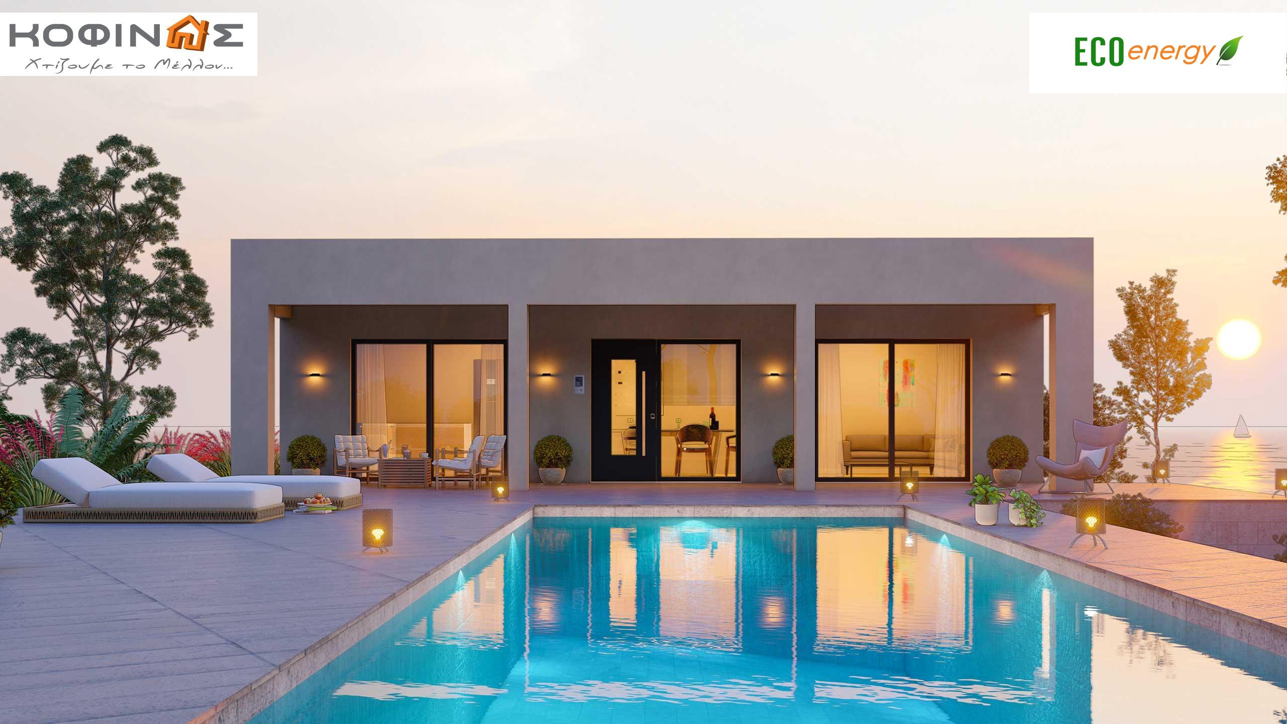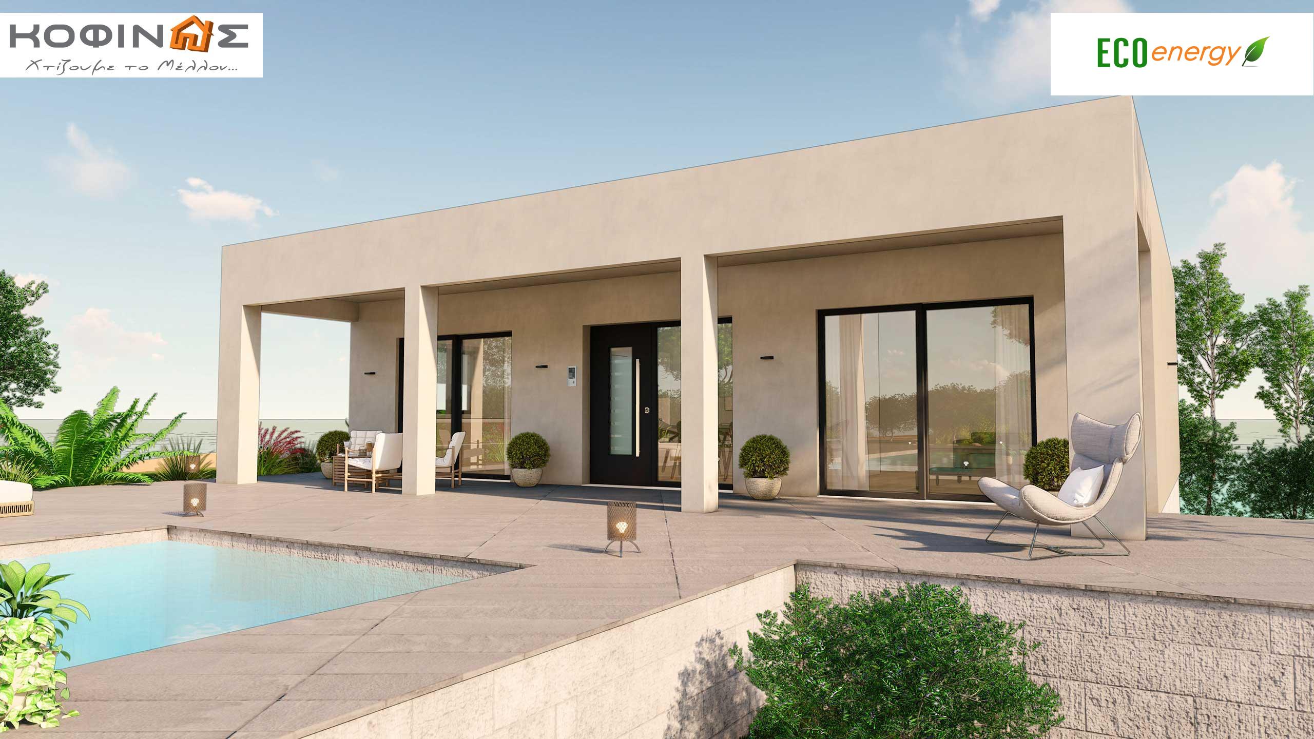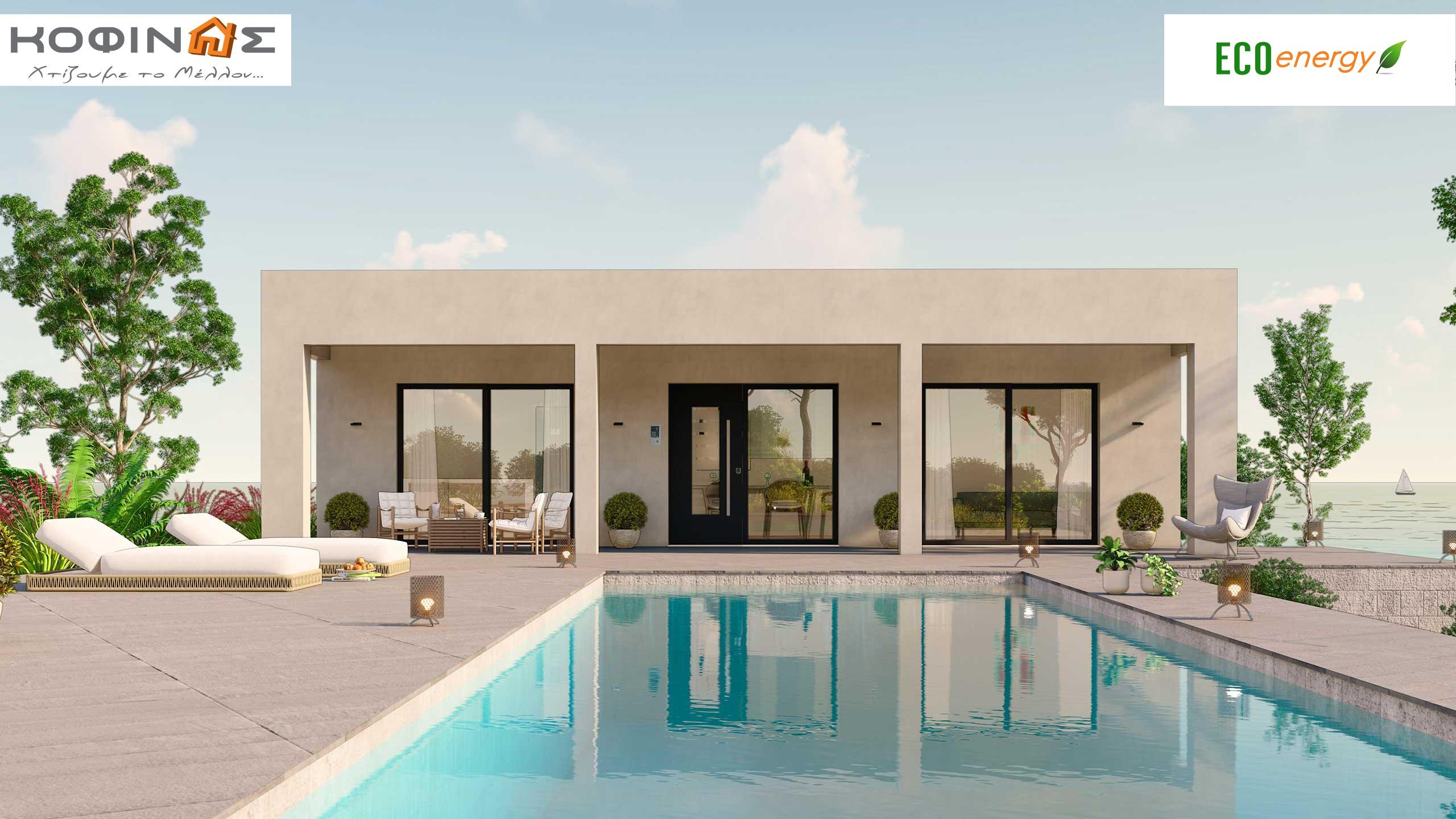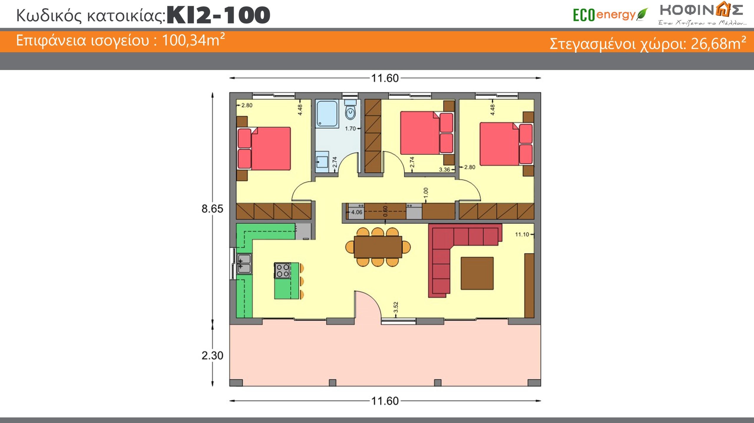 The company KOFINAS SA presents you with a proposal for a ground floor residence of 100.34 m² (Ground floor residence ΚΙ2-100) for the home of your dreams. The Kofinas company innovates without resting. It continuously introduces new elements in the construction of houses. Which are also recognized as “are certified". Both from our hundreds of satisfied customers and from the National Technical University of Athens, where the unique building system of the Kofinas company was tested for its durability. surpassing every natural limit of enduranceThe ground floor residence KI2-100 with the use Swedish timber as the main building material, makes the residence completely ecological. Since in the construction of houses, replacing conventional building materials with wood reduces carbon dioxide emissions into the atmosphere by 1.1 tons per cubic meter. Especially when the company collaborates with Swedish and Finnish timber production plants, where for every tree that is cut down, three to five new ones are planted, essentially producing negative carbon footprint.