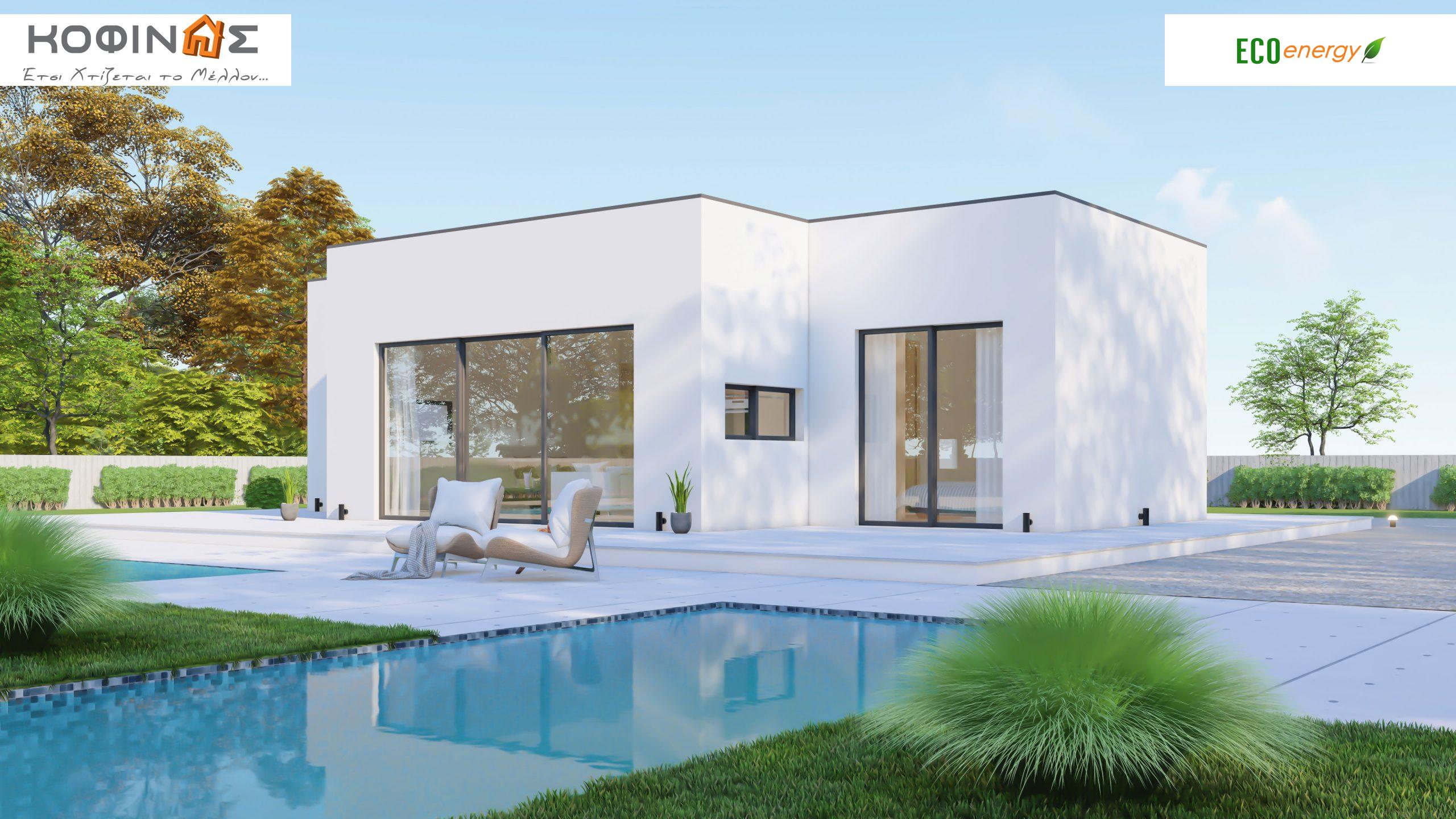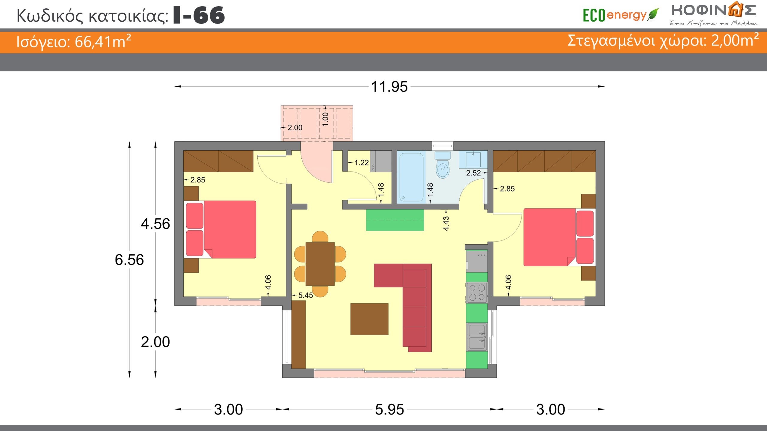 The company KOFINAS SA presents you with a proposal for a ground floor residence of 66.41 m² (Ground Floor Residence I-66) for the home of your dreams. The Kofinas company innovates without resting. It continuously introduces new elements in the construction of houses. Which are also recognized as “are certified". Both from our hundreds of satisfied customers and from the National Technical University of Athens, where the unique building system of the Kofinas company was tested for its durability. surpassing every natural limit of endurance.