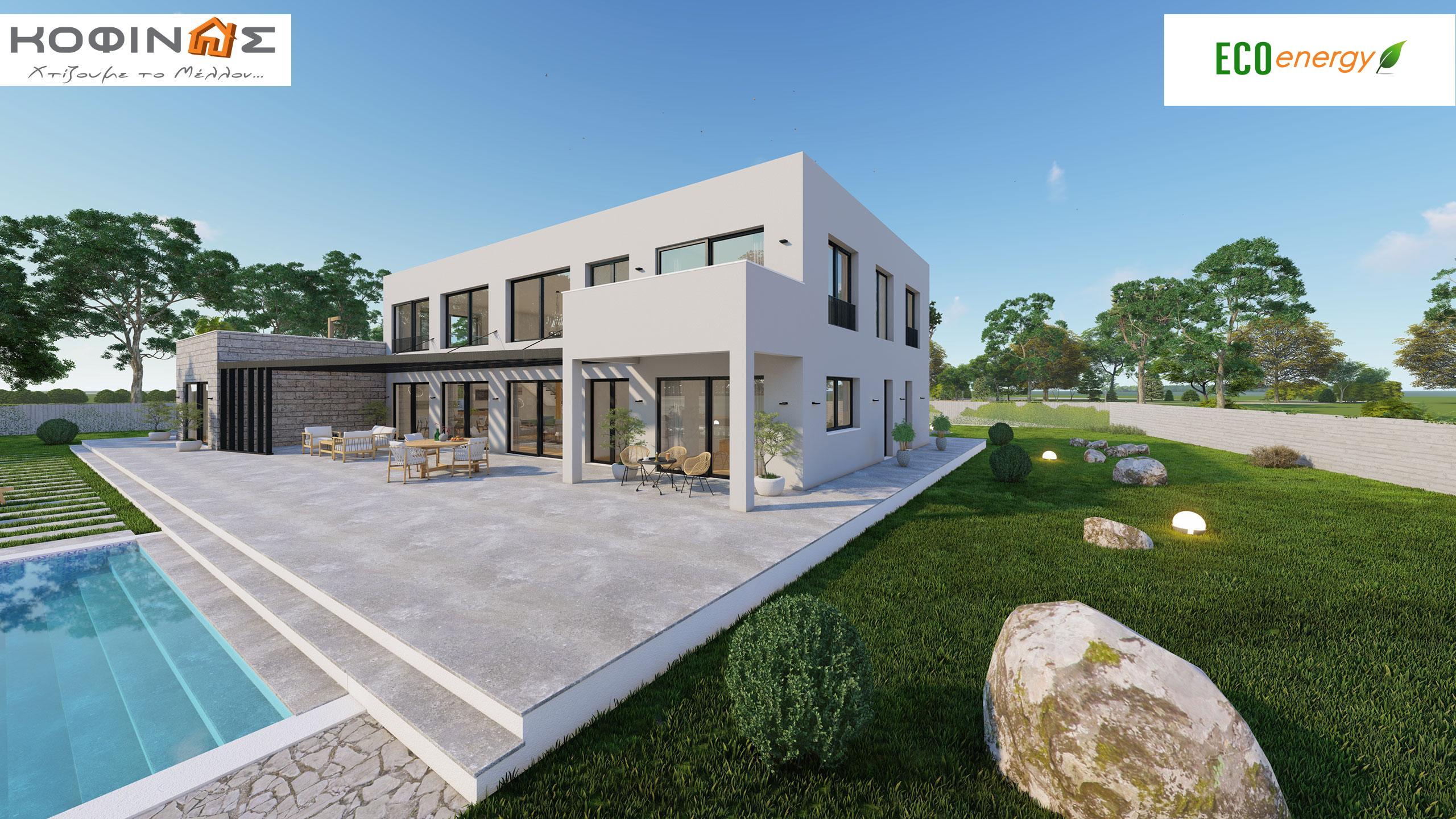 The company KOFINAS SA presents you with a proposal for a two-story house of 371.09 m² (Two-story house D-371) for the home of your dreams. The company Kofinas innovates without resting. It constantly introduces new elements in the construction of houses. Which are also recognized as “are certified". Both from our hundreds of satisfied customers and from the National Technical University of Athens. In which the unique building system of the Kofinas company was tested for its durability surpassing every natural limit of endurance. The two-story house D-371 with the use Swedish timber as the main building material, makes the residence completely ecological. Since in the construction of houses, replacing conventional building materials with wood reduces carbon dioxide emissions into the atmosphere by 1.1 tons per cubic meter. Especially when the company collaborates with Swedish and Finnish timber production plants, where for every tree that is cut down, three to five new ones are planted, essentially producing negative carbon footprint.