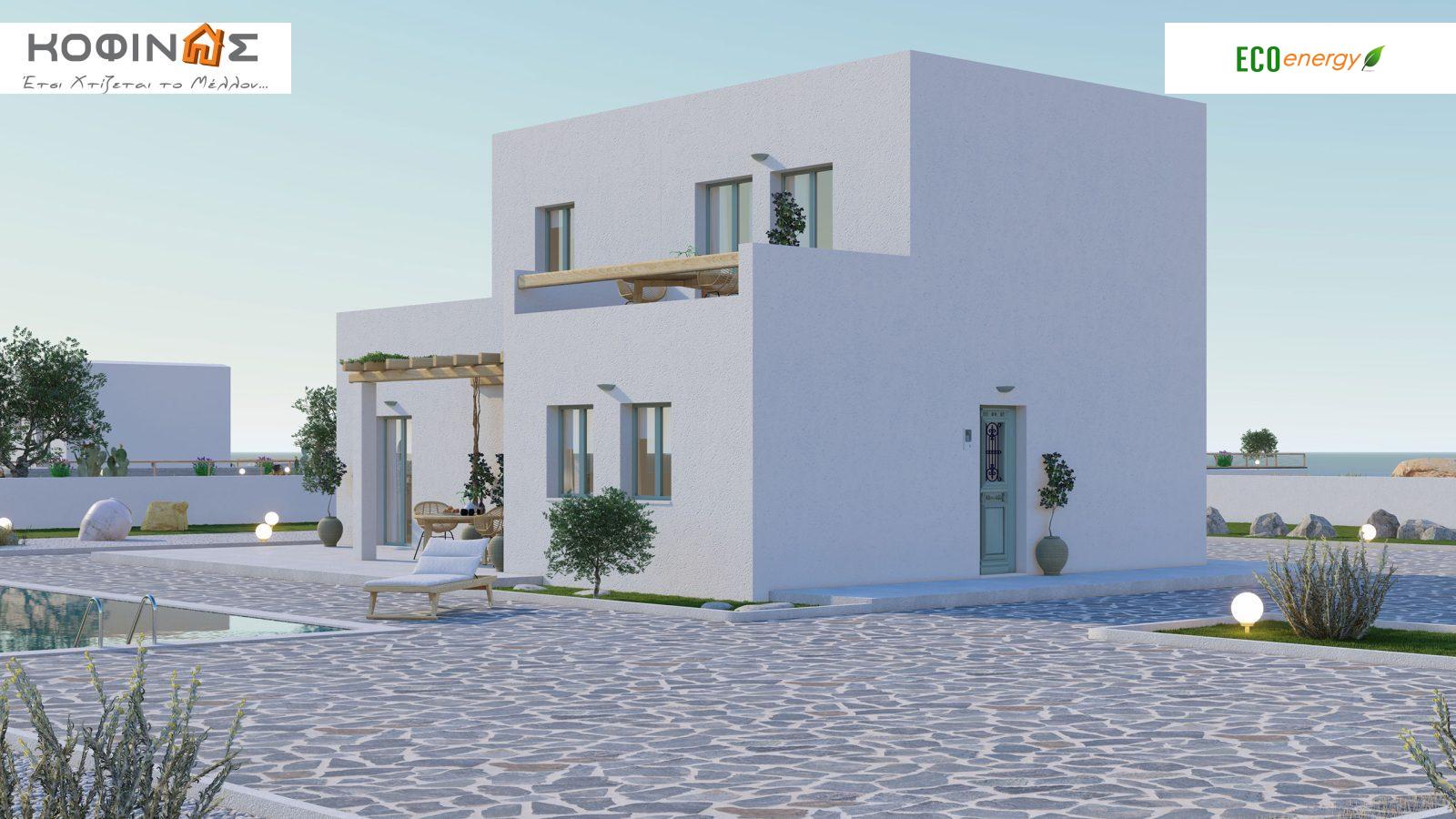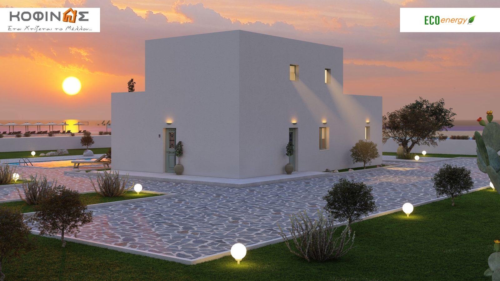 Wood is for us the king of materials. The feeling created by staying in such a prefabricated house cannot be explained, it is simply experienced. A house for you and your family to live in or a cottage for your relaxation. We have a wide variety of prefabricated designs, ready to adapt to any personal choices and requirements. In the KOFINAS range you will also find options in wooden houses with high durability and low energy consumption. The possibilities for arranging spaces are endless. In addition, the houses are designed in a way bioclimatic so that through openings, shading systems, orientation and mechanical equipment the necessary indoor climatic conditions exist and energy is saved for heating, cooling and lighting. Thus the Kofinas company houses have already received energy efficiency certificates A!Two-Storey Residence D-152.