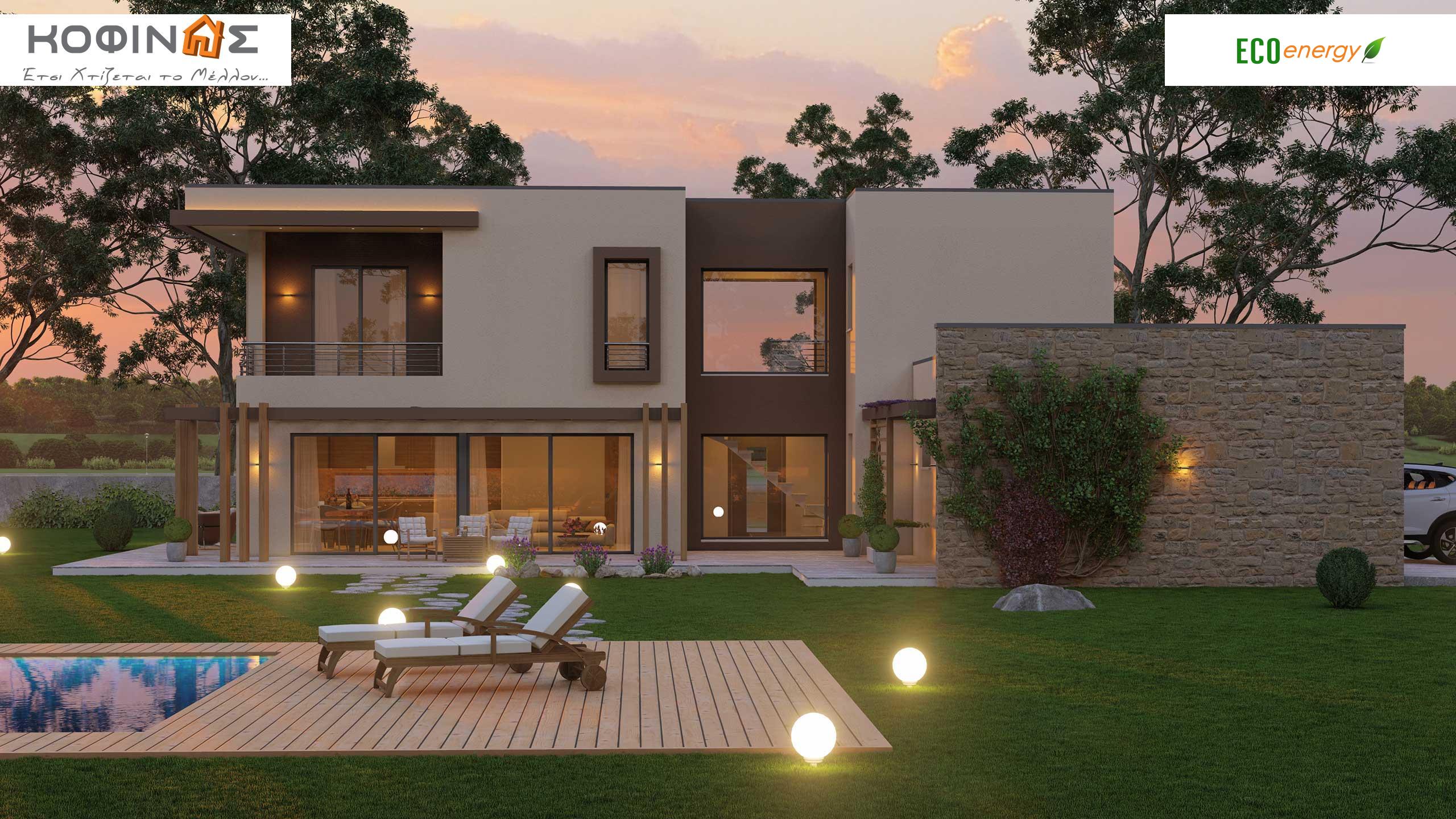 Wood is for us the king of materials. The feeling created by staying in such a prefabricated house cannot be explained, it is simply experienced. A house for you and your family to live in or a cottage for your relaxation. We have a wide variety of prefabricated designs, ready to adapt to any personal choices and requirements. In the KOFINAS range you will also find options in wooden houses with high durability and low energy consumption. The possibilities for arranging spaces are endless. In addition, the houses are designed in a way bioclimatic so that through openings, shading systems, orientation and mechanical equipment the necessary indoor climatic conditions exist and energy is saved for heating, cooling and lighting. Thus the Kofinas company houses have already received energy efficiency certificates A!Two-Storey Residence D-163.