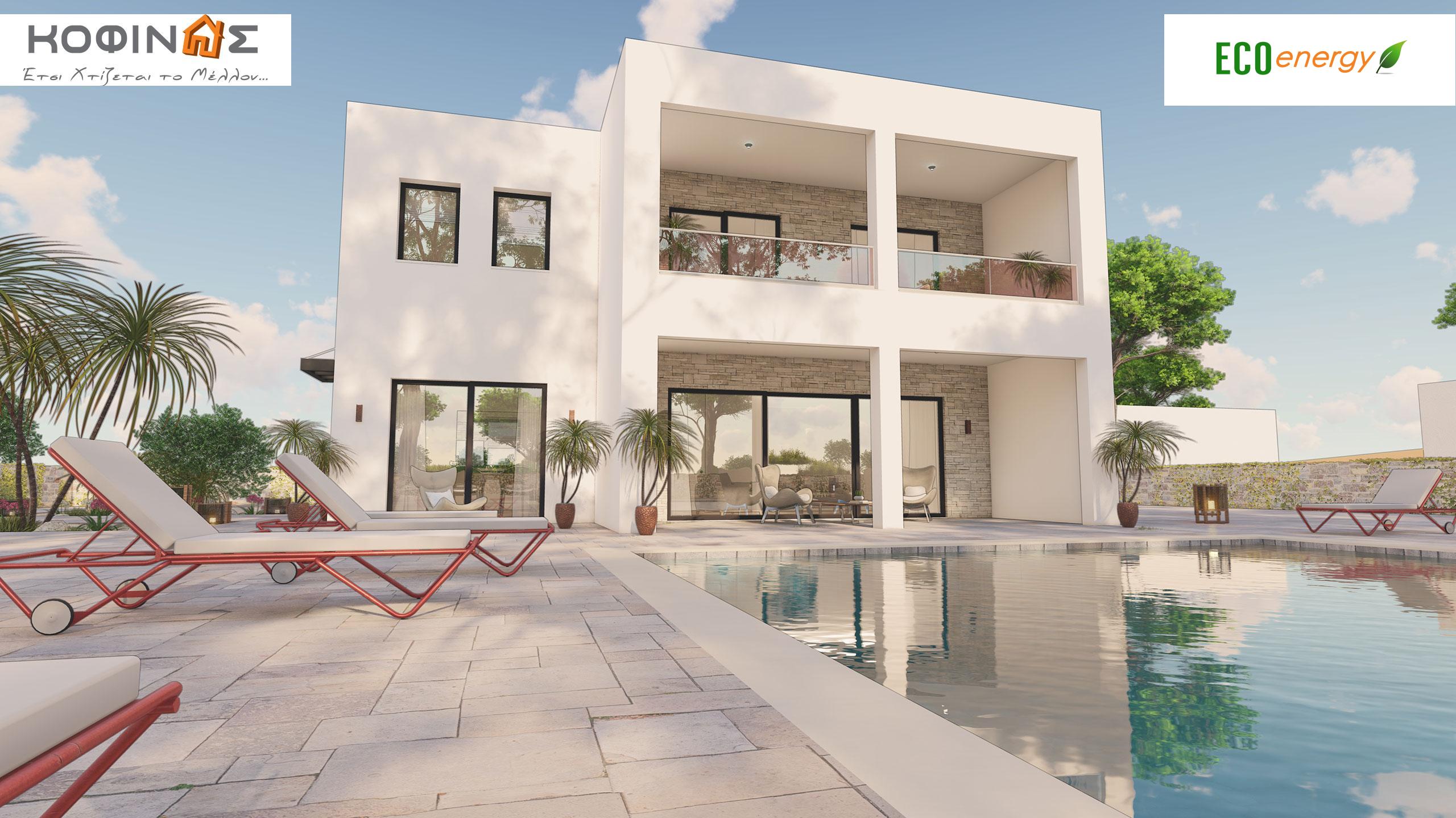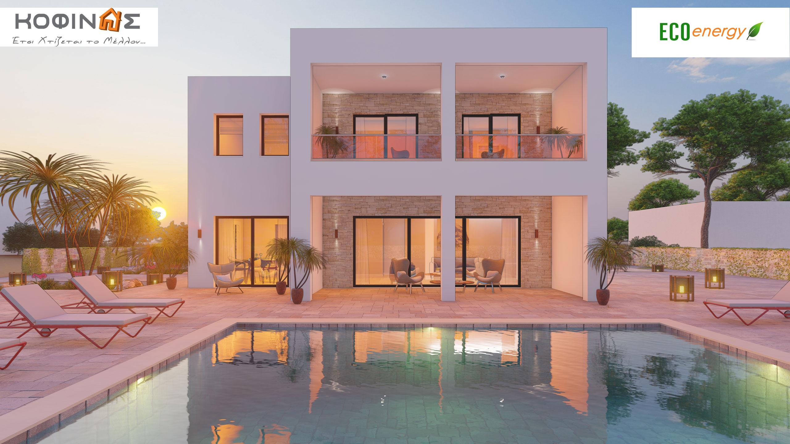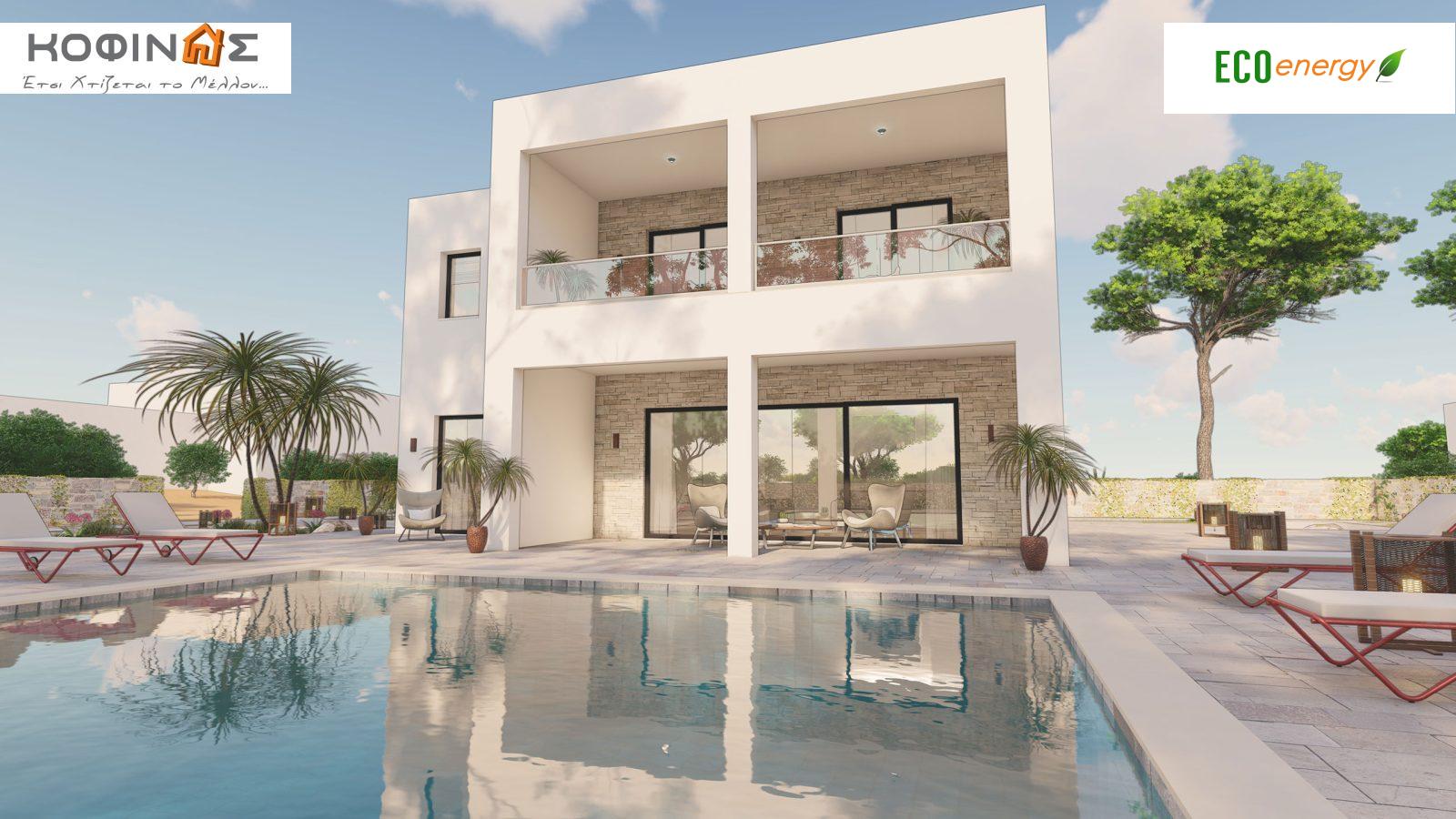The company KOFINAS SA presents you with a proposal for a two-story house of 169.50 m² (Two-story house KD1-169) for the home of your dreams. The company Kofinas innovates without resting. It constantly introduces new elements in the construction of houses. Which are also recognized as “are certified". Both from our hundreds of satisfied customers and from the National Technical University of Athens. In which the unique building system of the Kofinas company was tested for its durability surpassing every natural limit of endurance. The two-story house KD1-169 with the use Swedish timber as the main building material, makes the residence completely ecological. Since in the construction of houses, replacing conventional building materials with wood reduces carbon dioxide emissions into the atmosphere by 1.1 tons per cubic meter. Especially when the company collaborates with Swedish and Finnish timber production plants, where for every tree that is cut down, three to five new ones are planted, essentially producing negative carbon footprint.