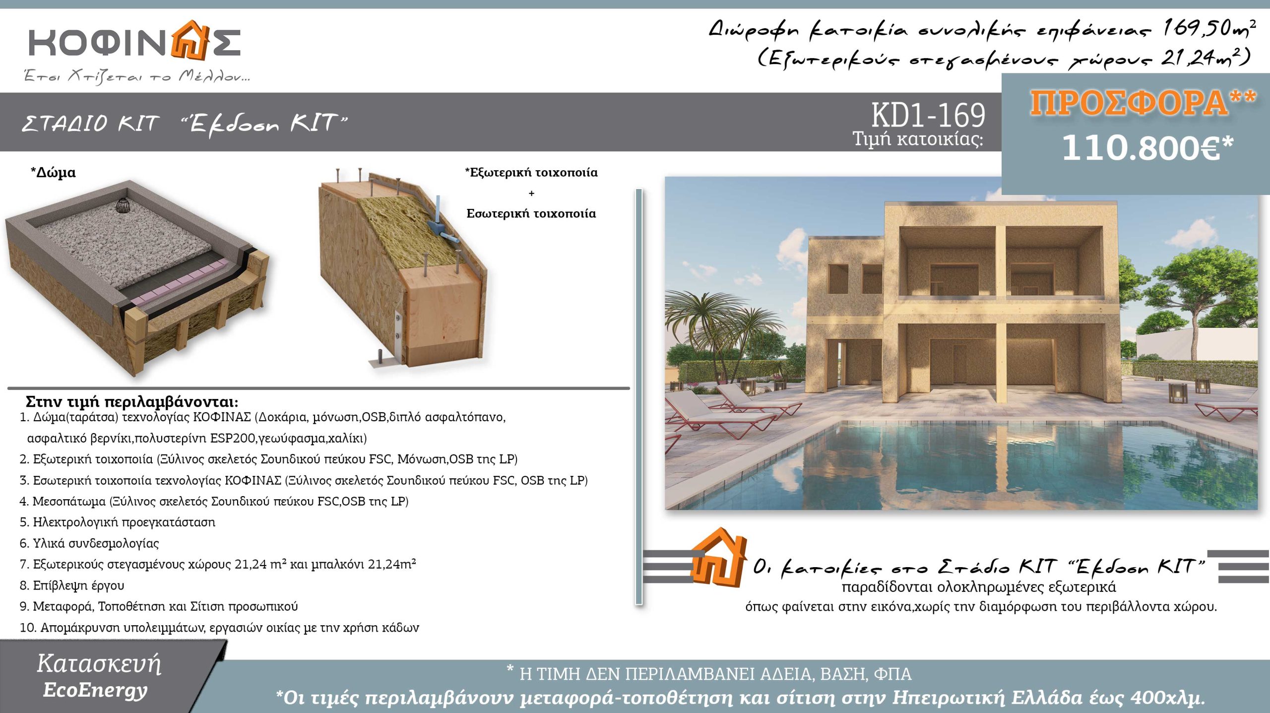 Η Διώροφη Κατοικία ΚD1-169 μπορεί να λειτουργήσει είτε ως μόνιμη κατοικία είτε ως εξοχική, με άπειρες δυνατότητες διαρρύθμισης και εξατομίκευσης. Η ΚΟΦΙΝΑΣ προσφέρει πλήθος αρχιτεκτονικών λύσεων, έτοιμες να προσαρμοστούν στις ανάγκες σας.